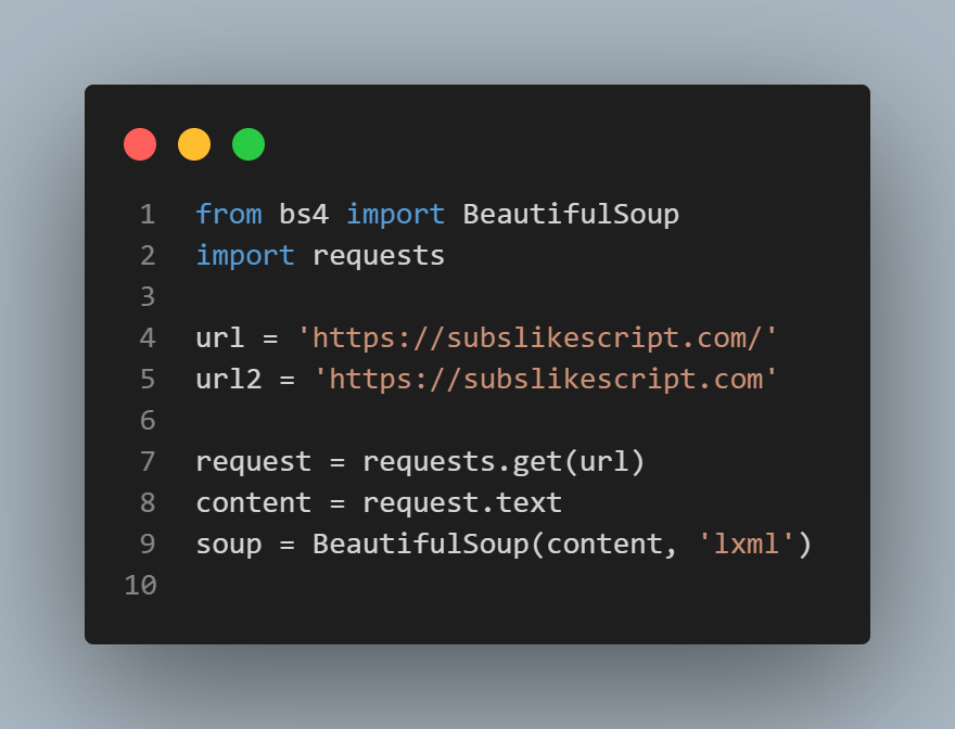 Here, we send a GET request to the website. The response is converted into readable HTML using request.text. Then, BeautifulSoup parses the HTML using the lxml parser for fast performance.